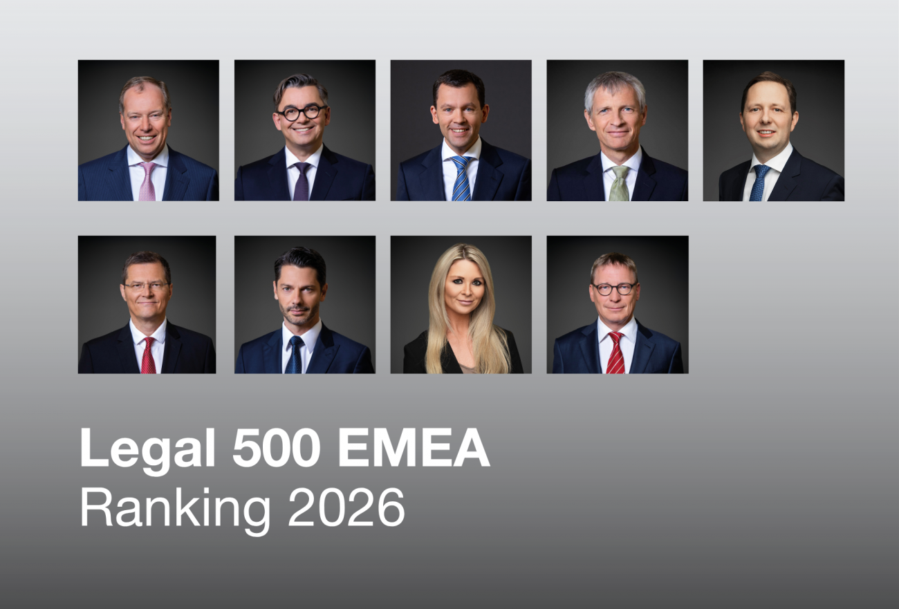 Mit den Legal 500 EMEA Rankings 2026 wird unsere starke Marktstellung über viele Praxisbereiche hinweg erneut sichtbar.
